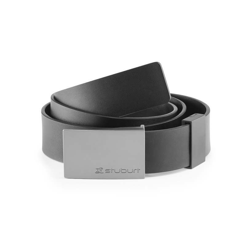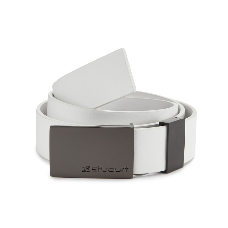 Exclusivo cinto de couro cortado sob medida com fivela de metal.
