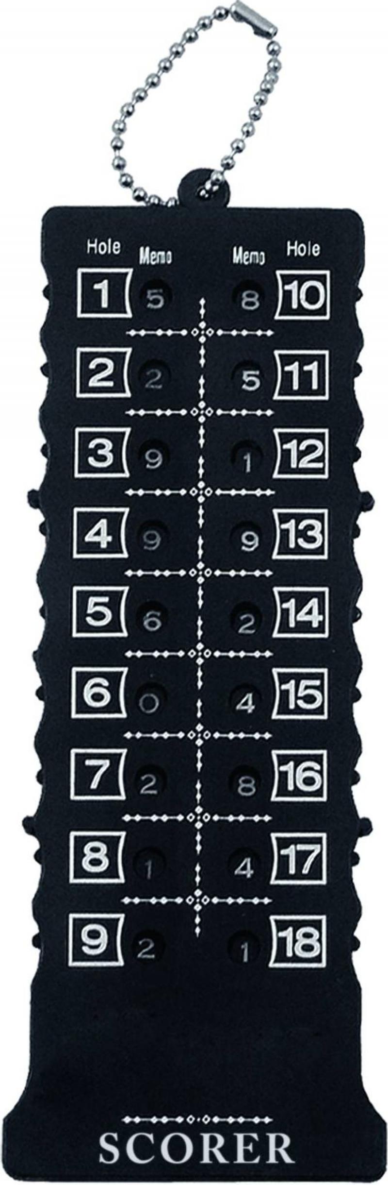 O apontador de 18 buracos regista sua pontuação para cada um dos 18 buracos que você joga.